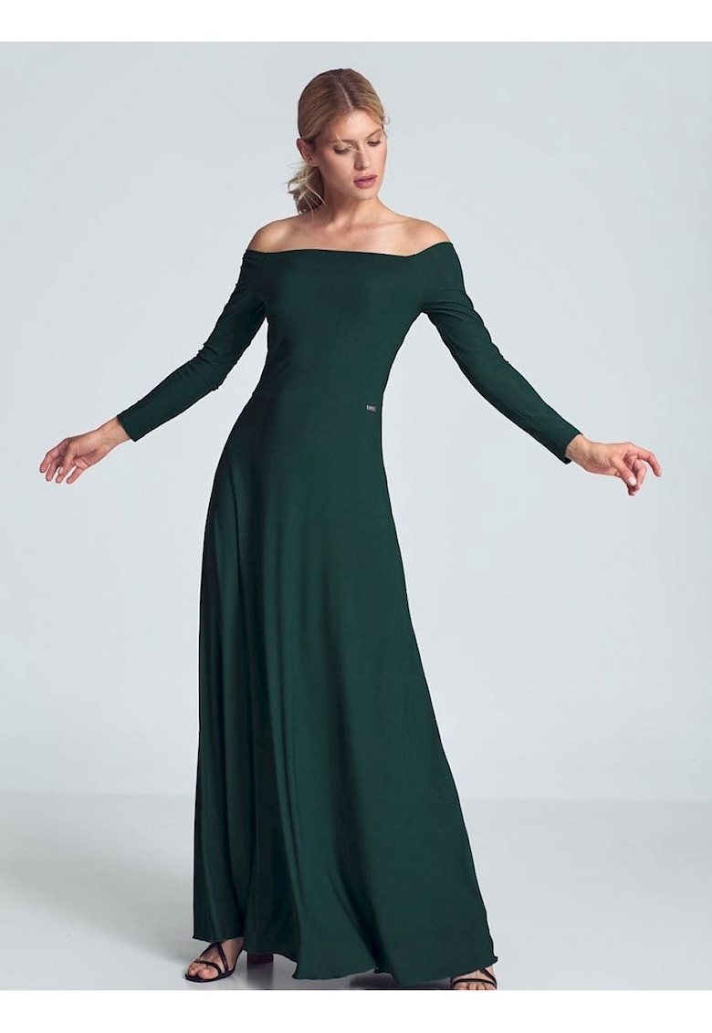 Макси рокля зелена – с дълги ръкави – високо деколте – плисета в областта на гърдите – зашита в талията – 5% еластан – 95% полиестер Figl
