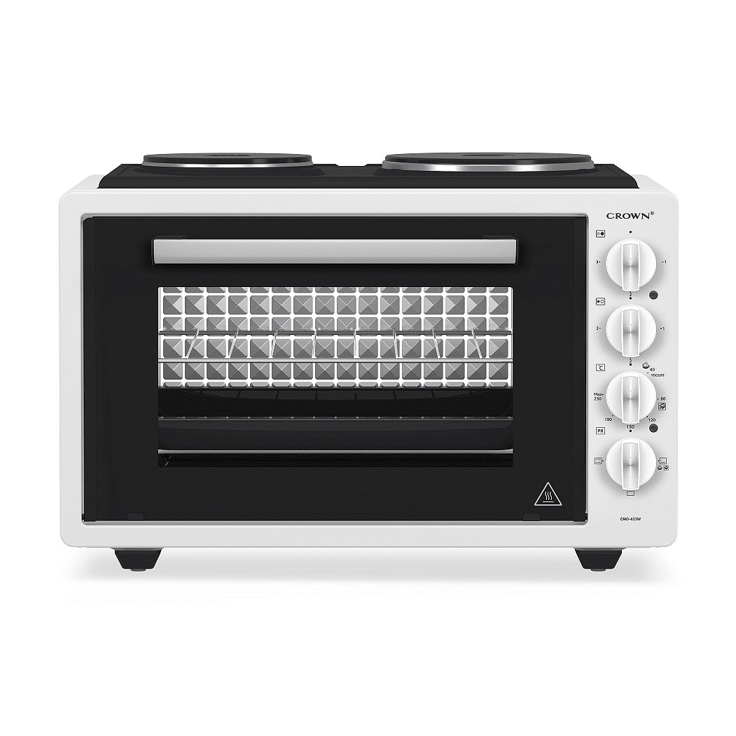 Малка готварска печка Crown CMO-433W, 42 л, 1300 W, Два котлона, 3 функции, Емайл, Бял