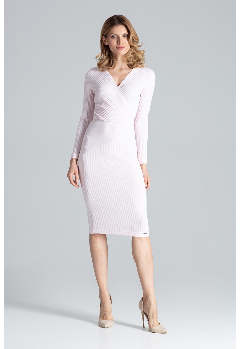 Относно Миди рокля – дълъг ръкав – рипсено деколте – розово – вискоза на Figl