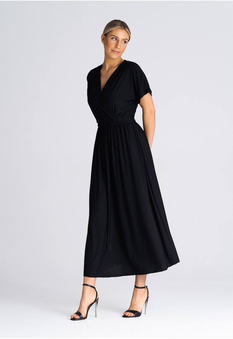 - Висококачествени материи – Миди рокля полиестер – черна – семпла – SM Figl е продукт изработен от най-добрите материи, осигуряващи комфорт и стил.