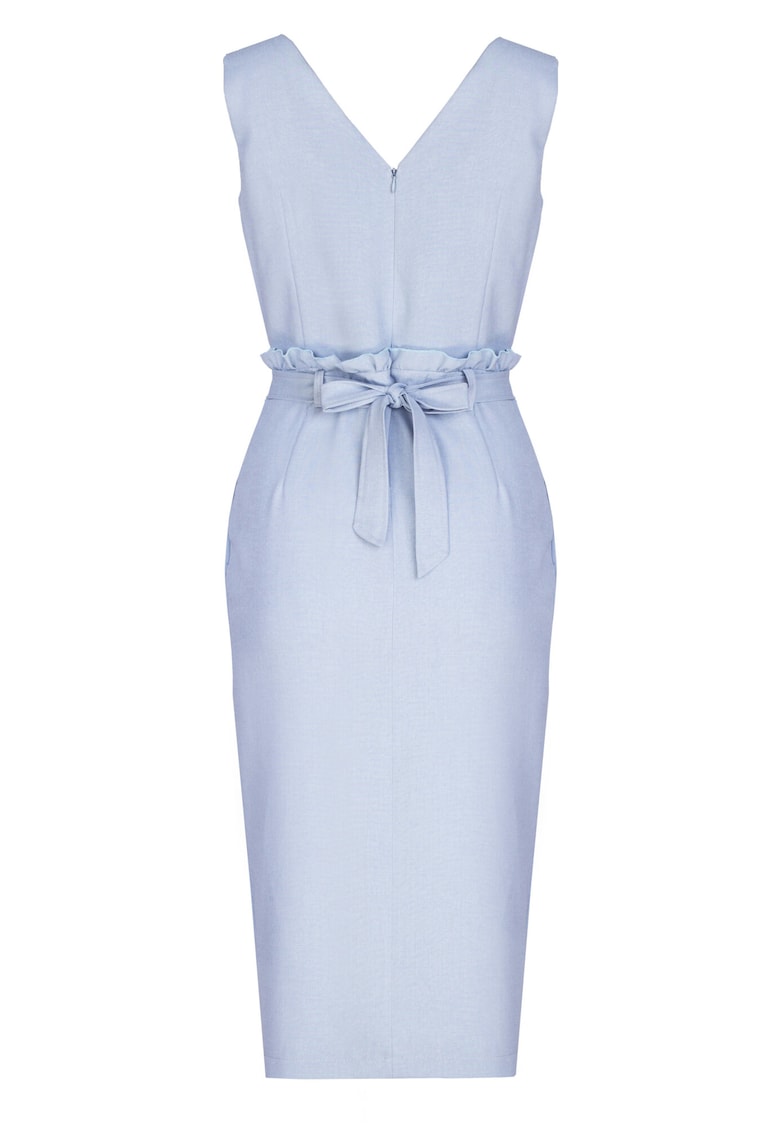 Относно Миди рокля синя – с колан – V-образно деколте – полиестер – на Figl