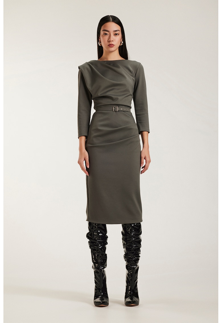 Миди рокля с драпиране – Tъмносив Alina Cernatescu