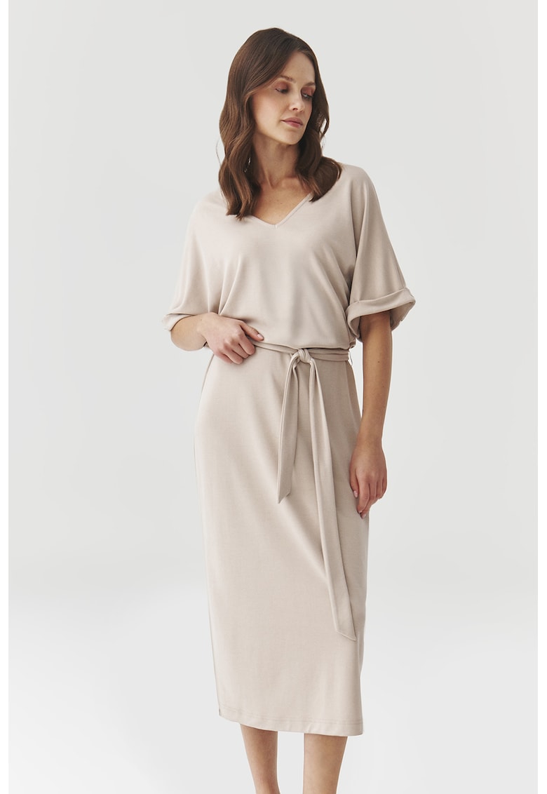 Относно Миди рокля с модал с връзка на талията – Бежов на Tatuum