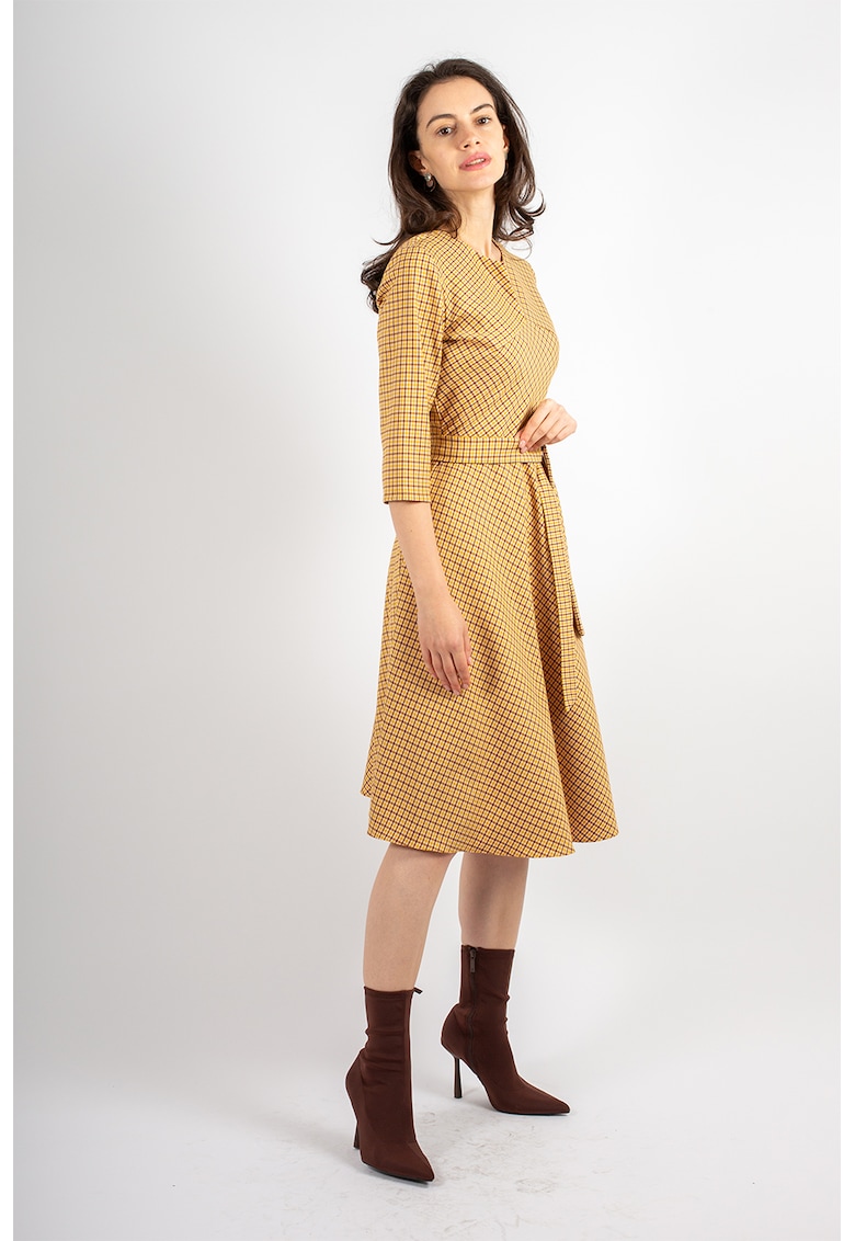 Миди рокля Victoria на каре – Кафяв/Тъмножълт Couture de Marie