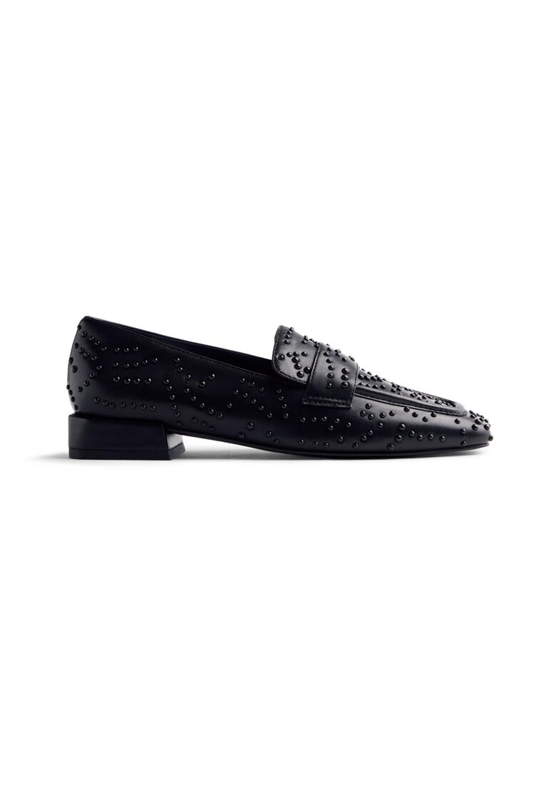 Характеристики Тип продукт: лоуфъри Цвят: черен Материал: екологична кожа Принт: без принт Стил: ежедневен Връх: квадратен Тип на подметката: плоска Детайли: капси Закопчаване: без закопчаване Състав Горна част: еко кожа Материал интериор: други материали – кожа …