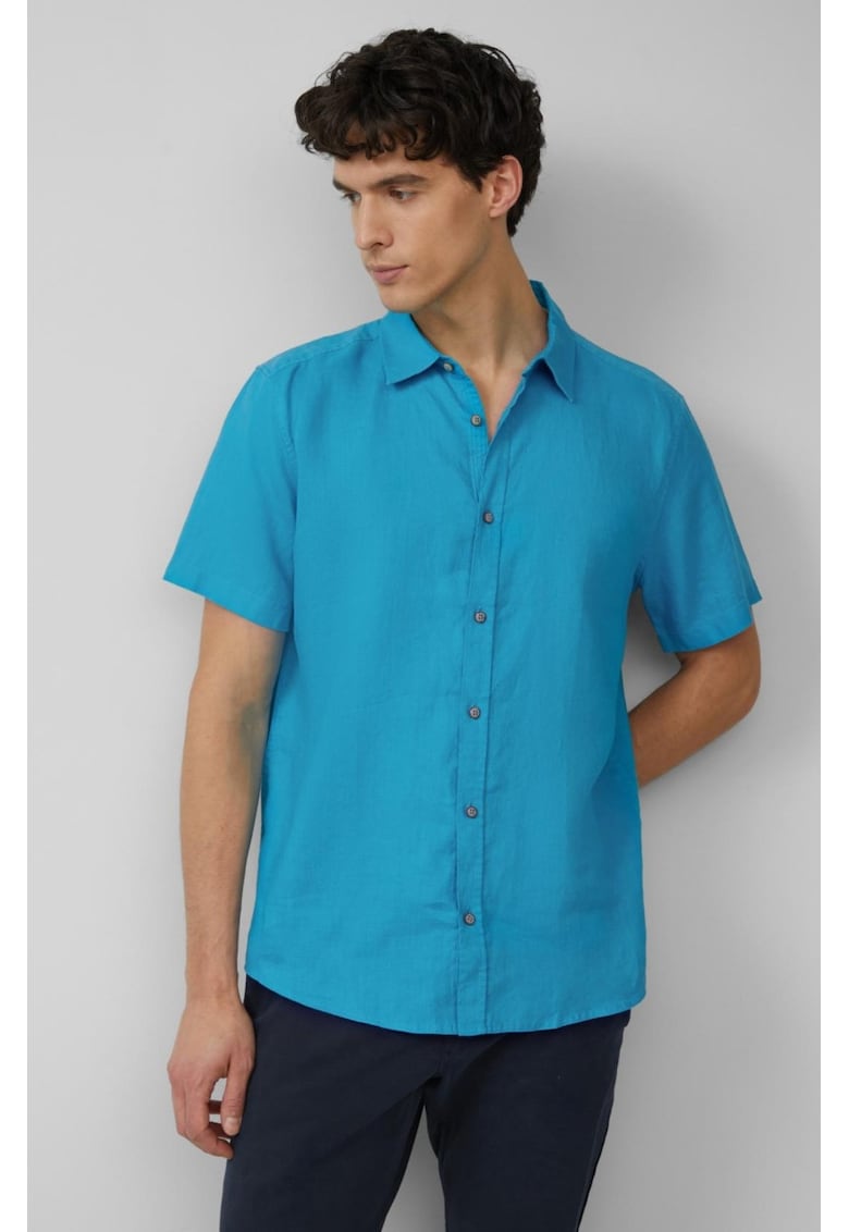 Относно Мъжка лека риза с къс ръкав 100% лен – Regular fit – тюркоазено сива sOliver
