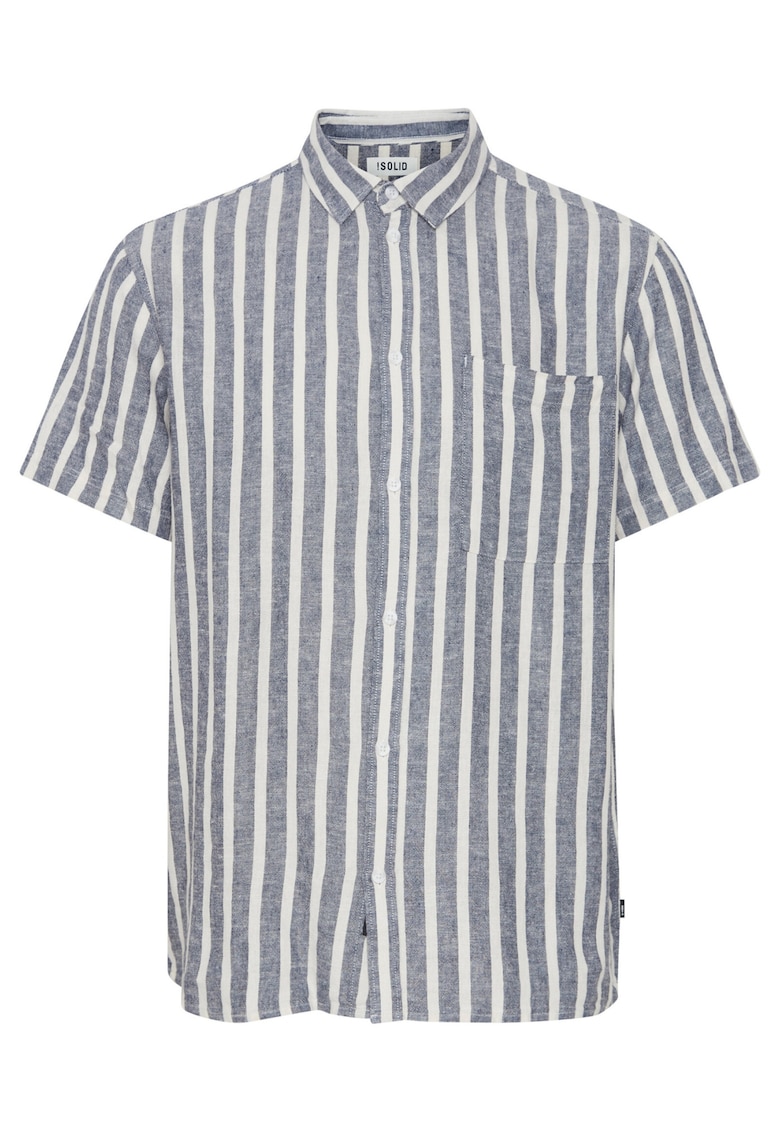 Относно Мъжка риза – плътна – лен/вискоза – синя – Син Solid
