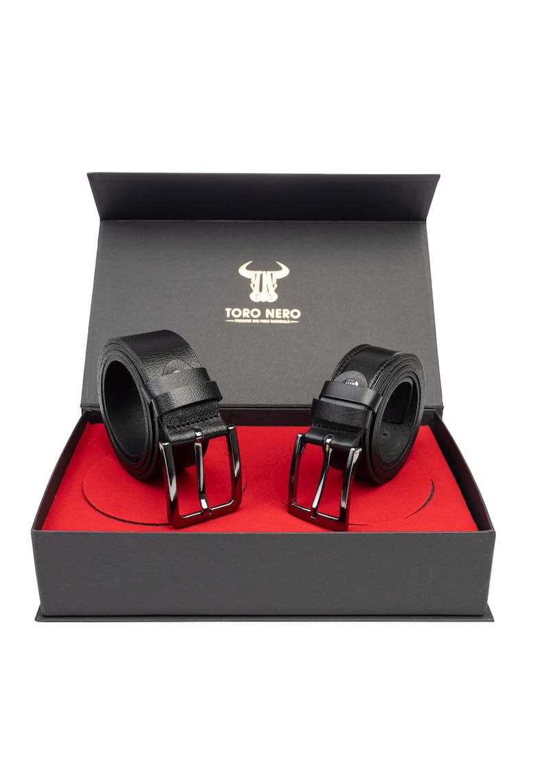 Мъжки комплект естествена кожа ежедневен+елегантен колан класика-нощен Toro Nero