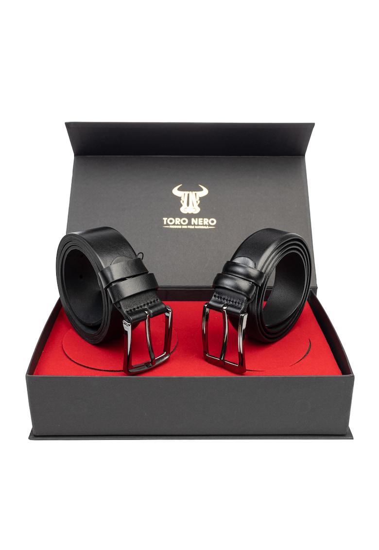 Мъжки комплект естествена кожа черен ежедневен+елегантен колан Basic-Smooth Toro Nero