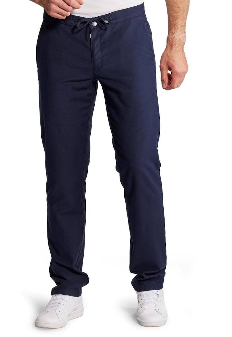Характеристики Цвят: син Принт: без принт Материал: памук – еластан Стил: ежедневен – елегантен Кройка: стандартна Талия: ниска Дължина: дълъг Закопчаване: връзки – капси Колекция: пролет – лято