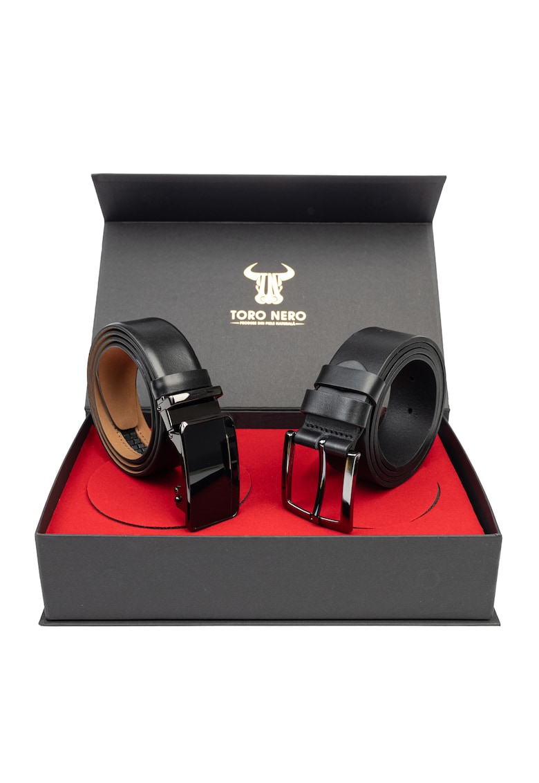 Мъжки подаръчен комплект – естествена кожа – ежедневен колан + елегантен колан – Soft-Smooth Toro Nero