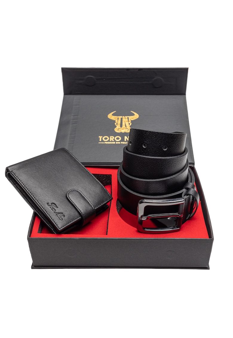 • Комплект портфейл и колан - мъжки - от естествена кожа Max-Rubber Toro Nero