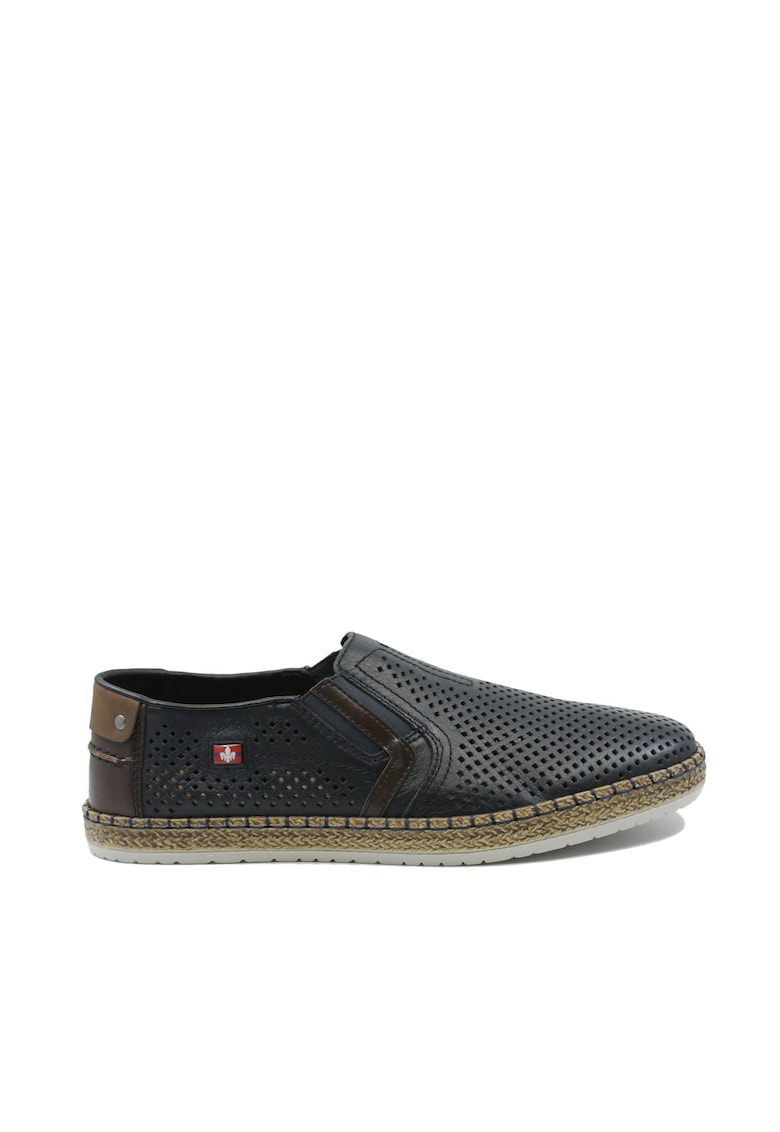 Мъжки тъмносини мокасини от естествена кожа с перфорации Rieker