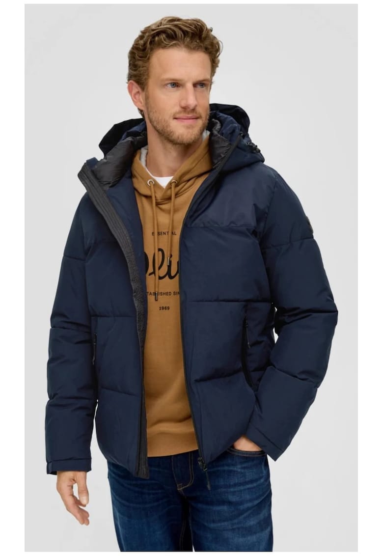 Мъжко яке с качулка и стандартна кройка ватирано – черно – Тъмносин sOliver