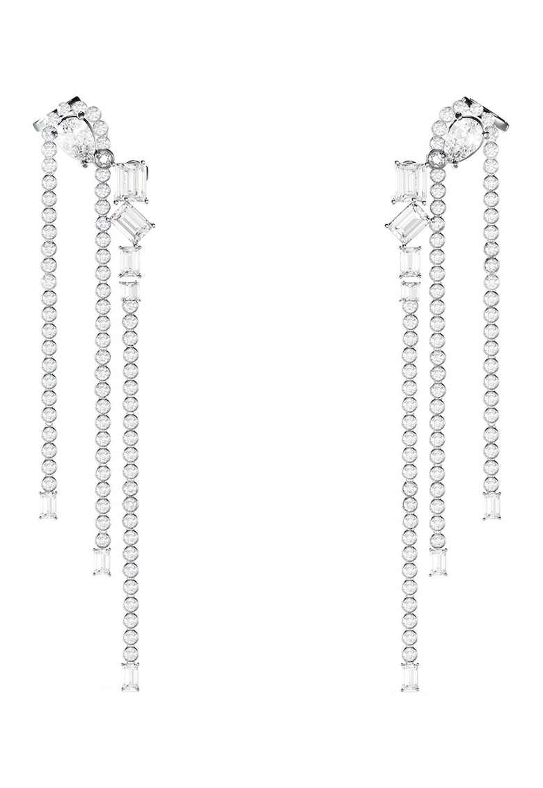 Характеристики Тип продукт: обеци Материал: инокс Цвят: сребрист Закопчаване: винтова пръчка Опаковка: продуктът се доставя в персонализирана опаковка. Състав Състав: неръждаема стомана Камъни: кристали – цирконий Покритие: родиево Размери Дължина: 10 Допълнителна …