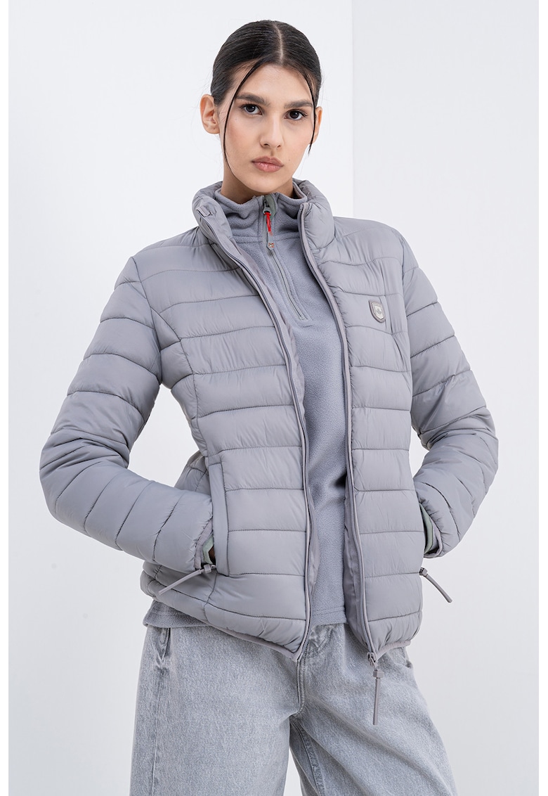 Характеристики Тип продукт: зимно яке Цвят: светло сив Принт: без принт Материал: синтетичен Кройка: стандартна Яка: средновисока Качулка: без качулка Дължина ръкав: дълъг ръкав Джобове: 2 странични с цип Технология: cold protect – wind protect – rain-snow protect Закопчаване: цип Състав …