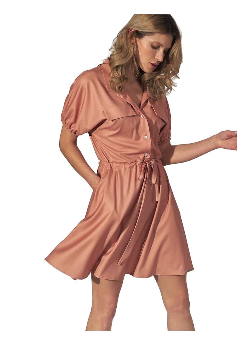 Оранжева мини рокля яка – еластични ръкави – джобове – еластична материя – вискоза Figl на ниска цена
