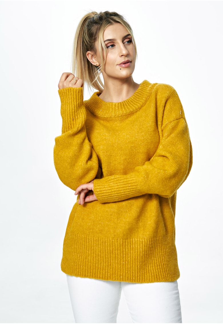 Оувърсайз пуловер – жълт – вълнена плетка – деколте тип „лодка“ – един размер Figl