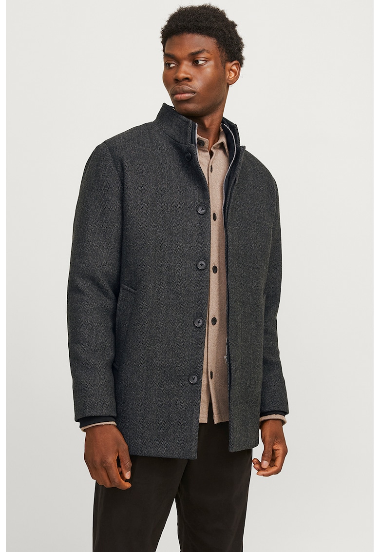 Относно Палто с вълна и джобове встрани – Меланж тъмно сиво Jack Jones