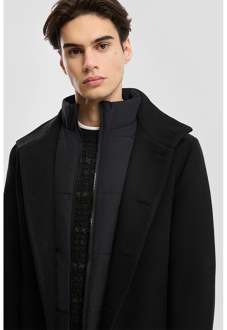 Палто с вълна и капитониран елемент – Черен QS