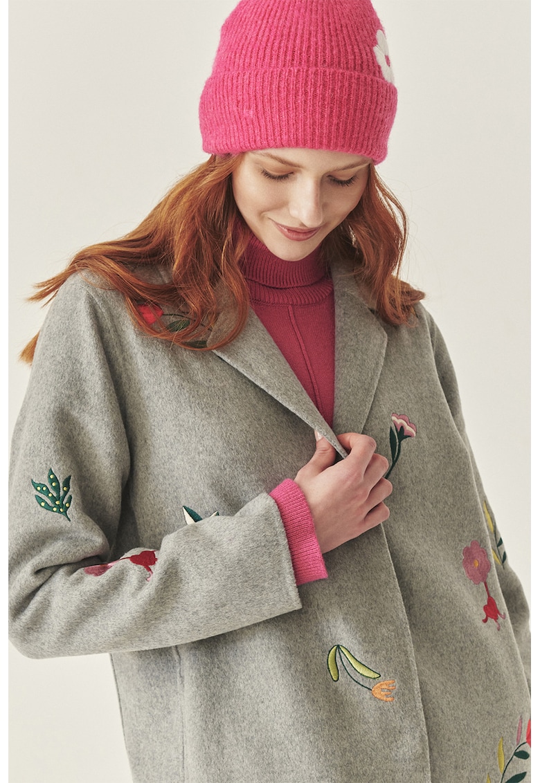 Относно Палто с вълна с бродерия – Зелен/Светло сив/Розово Tatuum