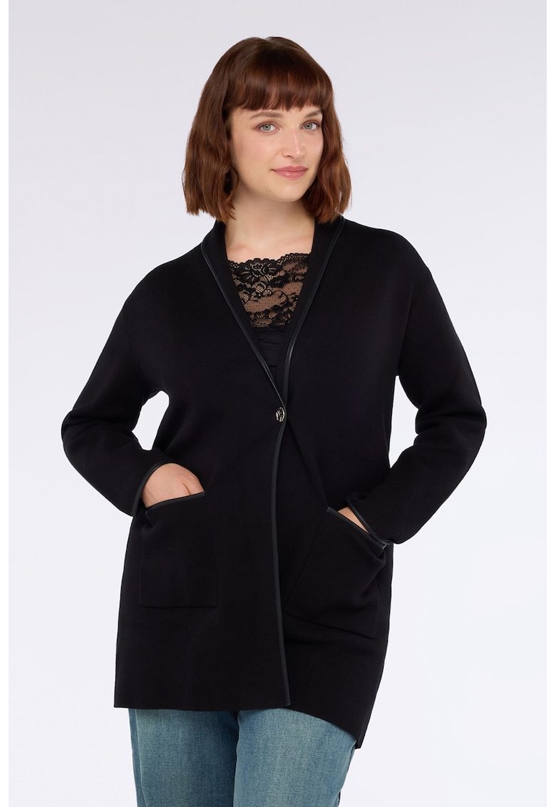 Характеристики Тип продукт: палто Цвят: черен Принт: без принт Стил: ежедневен Материал: полиестер – вискоза – полиамид Кройка: стандартна Дължина ръкав: дълъг ръкав Детайли: забележка: продуктът е предназначен за дами плюс размер. Закопчаване: цип Състав Външна част: 50% …