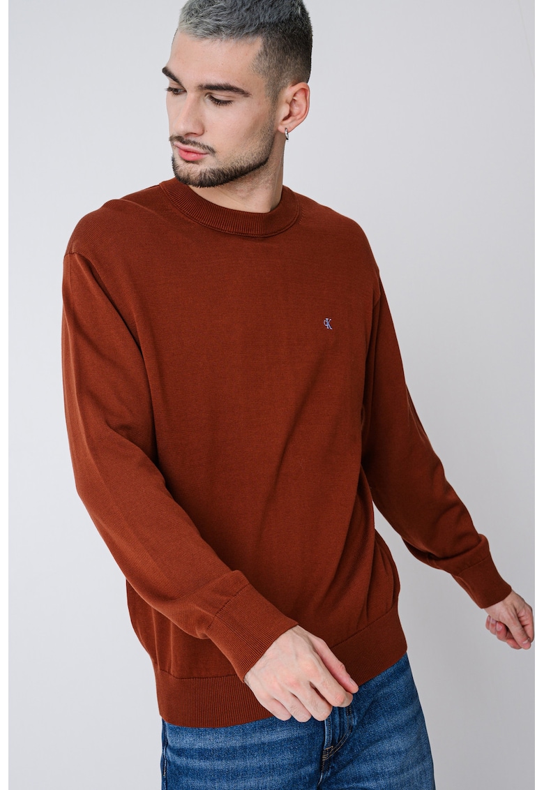 Памучен суитчърт с овално деколте – Кафяв CALVIN KLEIN JEANS