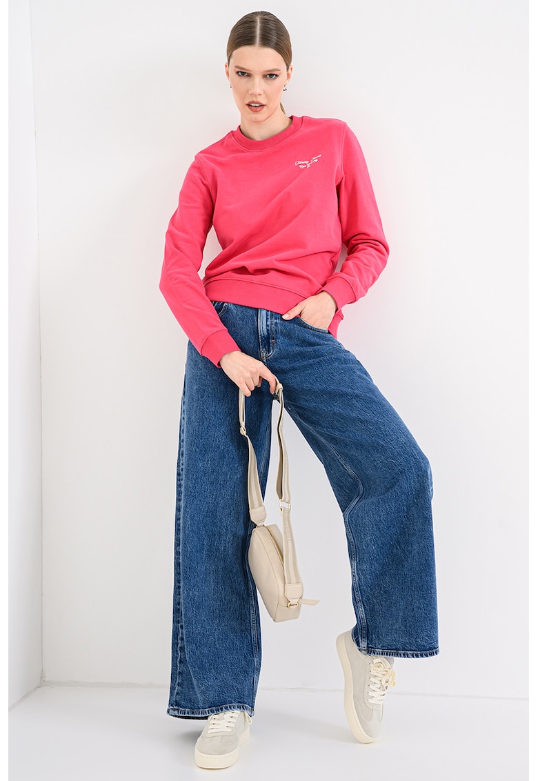 Памучен суитшърт с овално деколте – Фуксия Tommy Jeans