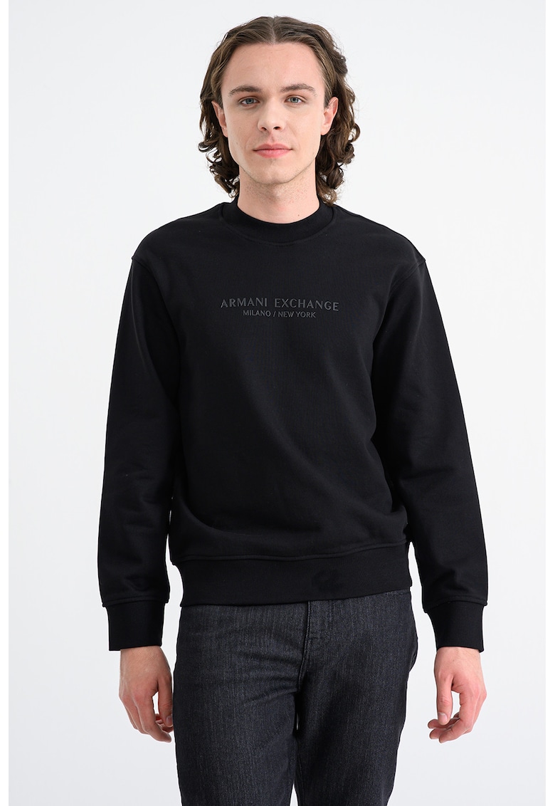 Памучен суитшърт с овално деколте – Черен ARMANI EXCHANGE