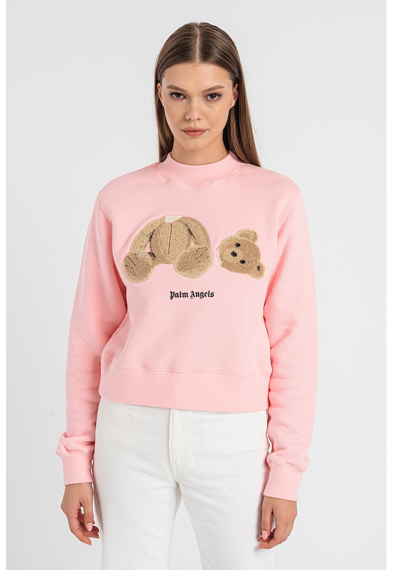 Памучен суитшърт с плюшена апликация – Черен/Пастелнорозов/Светлокафяв PALM ANGELS