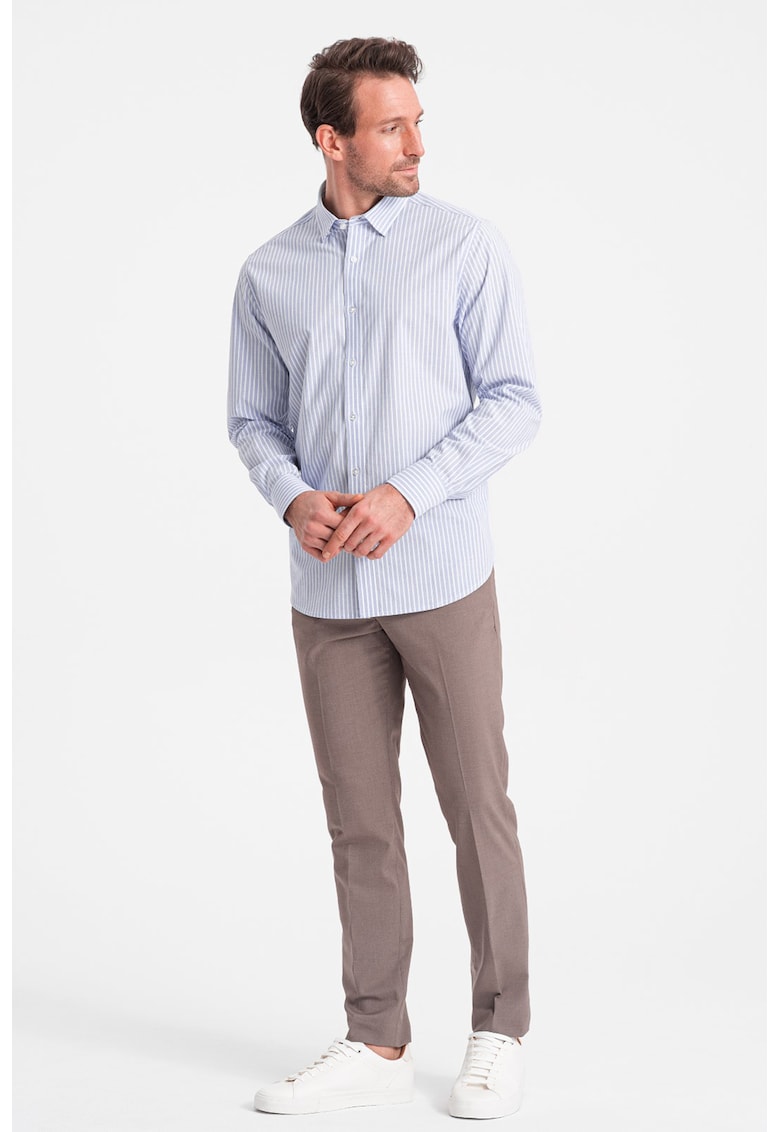 Памучна риза на райе – Бял/Небесносин OMBRE