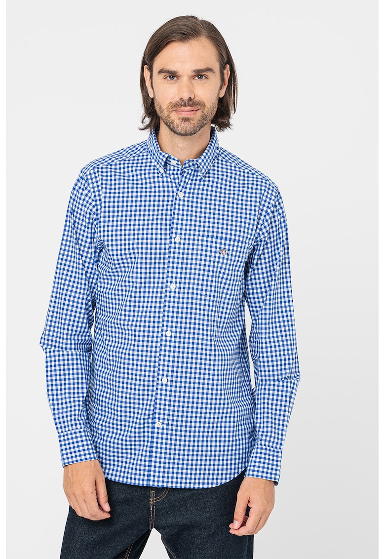 Памучна риза с десен – Кралско Синьо/Бял Gant