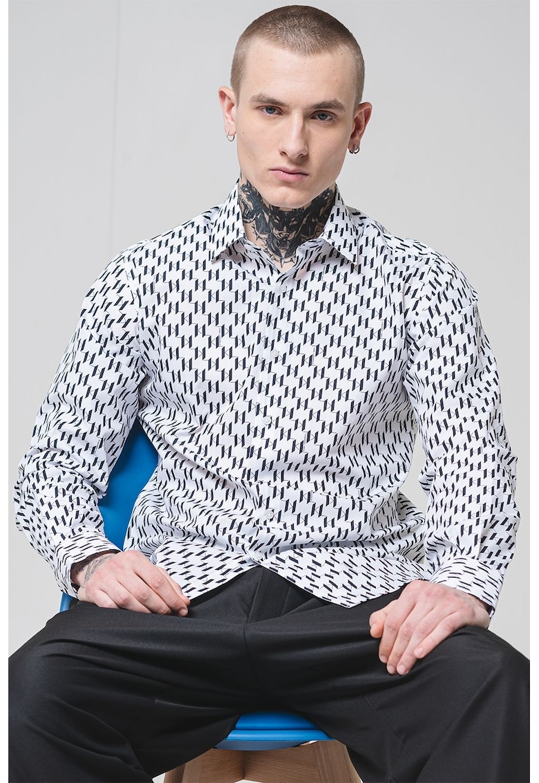 Памучна риза с монограм – Бял/Черен Karl Lagerfeld