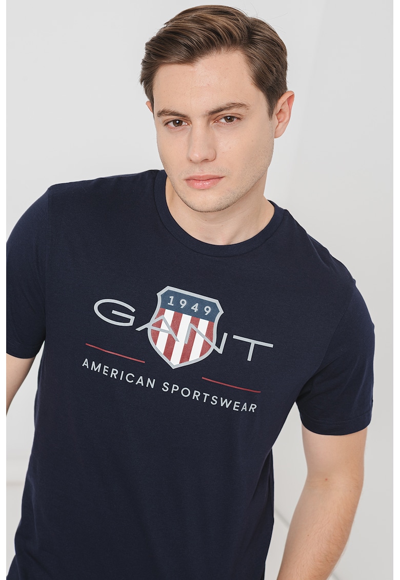 Памучна тениска с лога – Тъмносин Gant