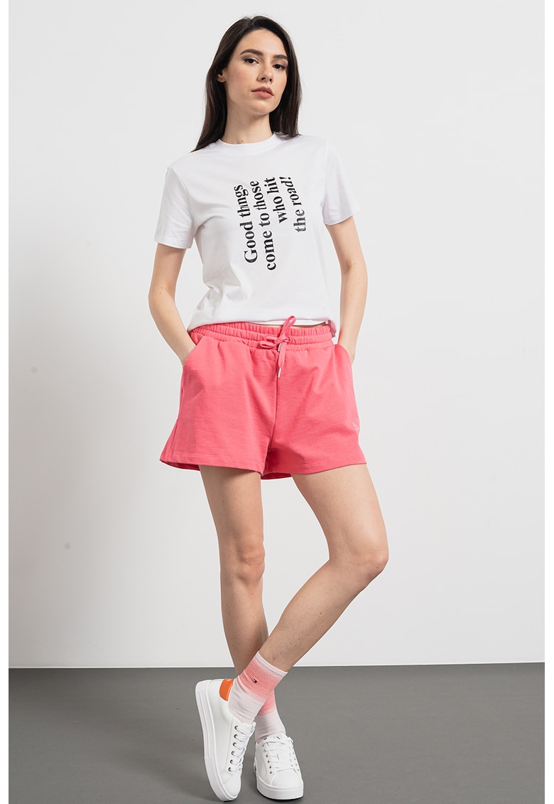 Характеристики Цвят: бял – черен Принт: текст Материал: памук Кройка: стандартна Модел: обло Яка: овално деколте Дължина ръкав: къс ръкав Състав Външна част: 100% памук Информация за модел Моделът е облечен с размер S. Размер на модела: 177 cm височина – 86 cm Гръдна обиколка – 60 cm …
