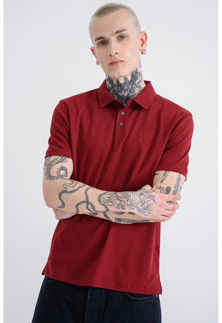 Памучна тениска с яка – Бордо CALVIN KLEIN