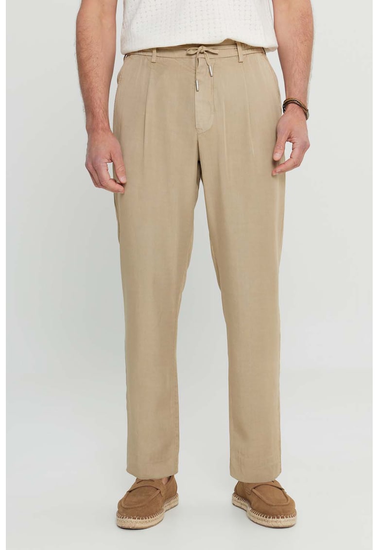 Характеристики Цвят: camel Принт: без принт Материал: лиосел Стил: ежедневен Кройка: стандартна Талия: средновисока Джобове: обшити отзад – предни – скосени Дължина: дълъг Детайли: връзка на талията Закопчаване: цип Състав Външна част: 100% лиосел