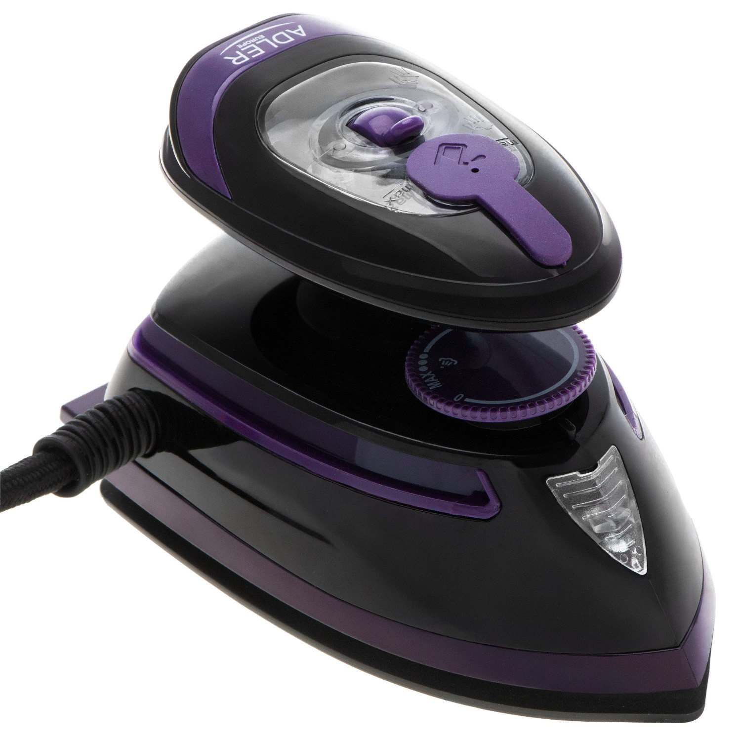 Парна ютия за пътуване Adler AD 5049, 420W, 30 мл, Керамична плоча, Парно и сухо гладене, Черен/Лилав на най-добра цена.