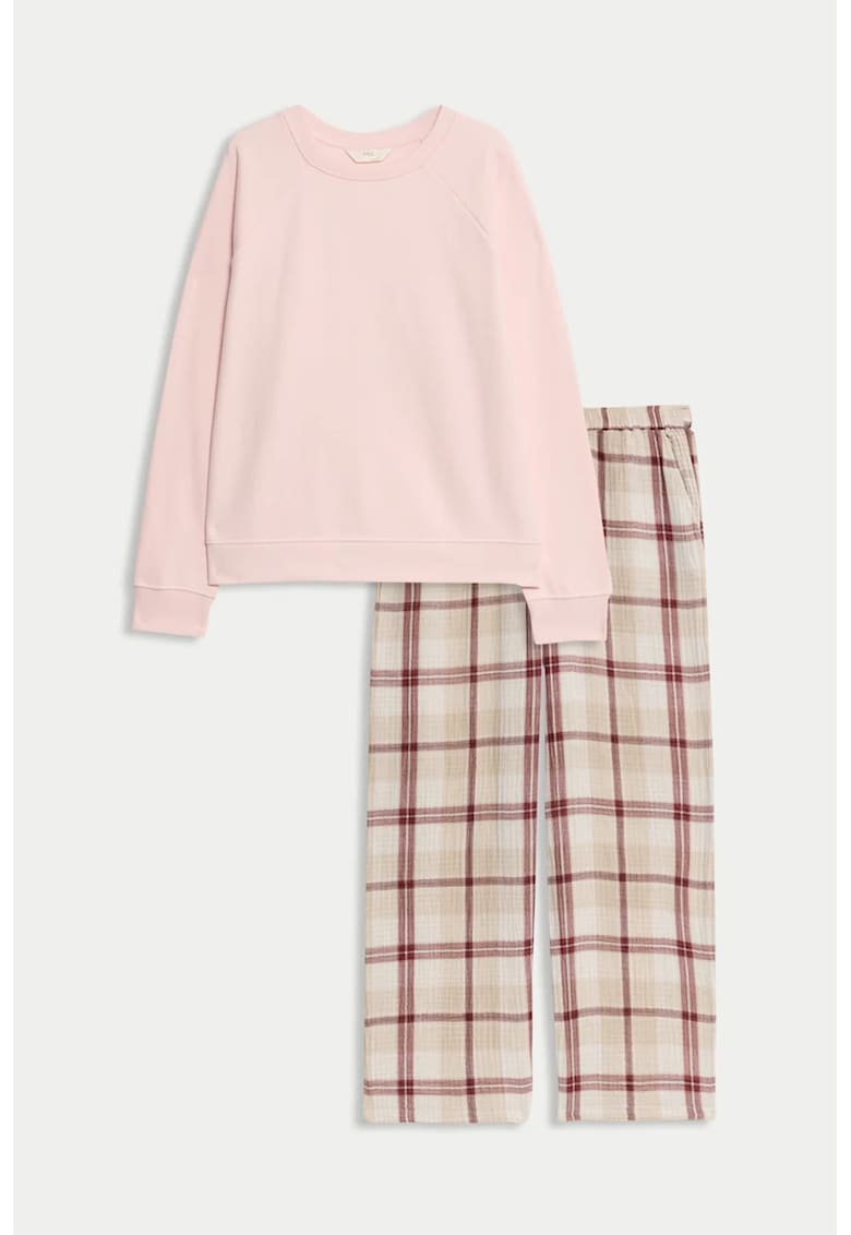 Пижама с дълга долна част на каре – Бежов/Розово Marks Spencer