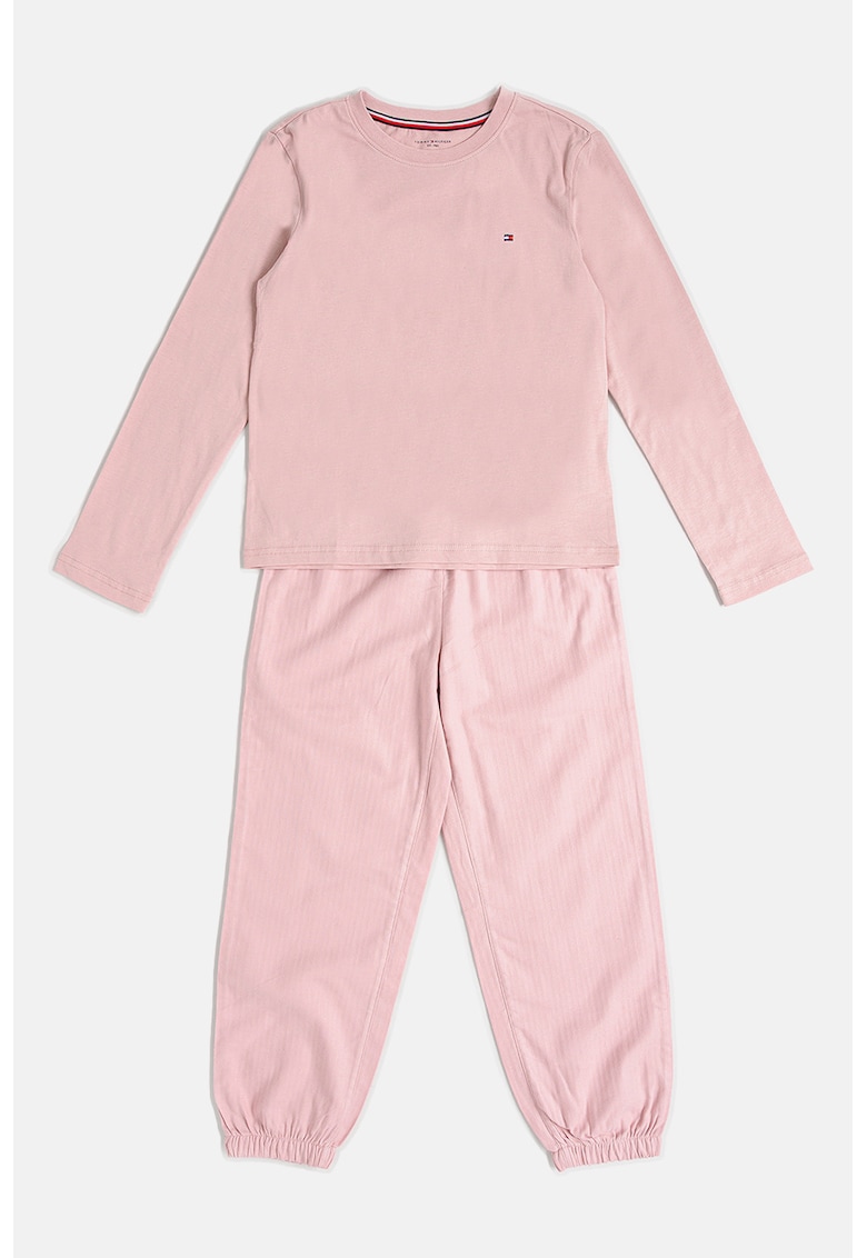 Характеристики Тип продукт: пижама Цвят: прашно розово Материал: памук Принт: без принт Деколте: овално деколте Дължина ръкав: дълъг ръкав Талия: лента с лого Закопчаване: без закопчаване Колекция: есен – зима Състав Външна част: 100% памук