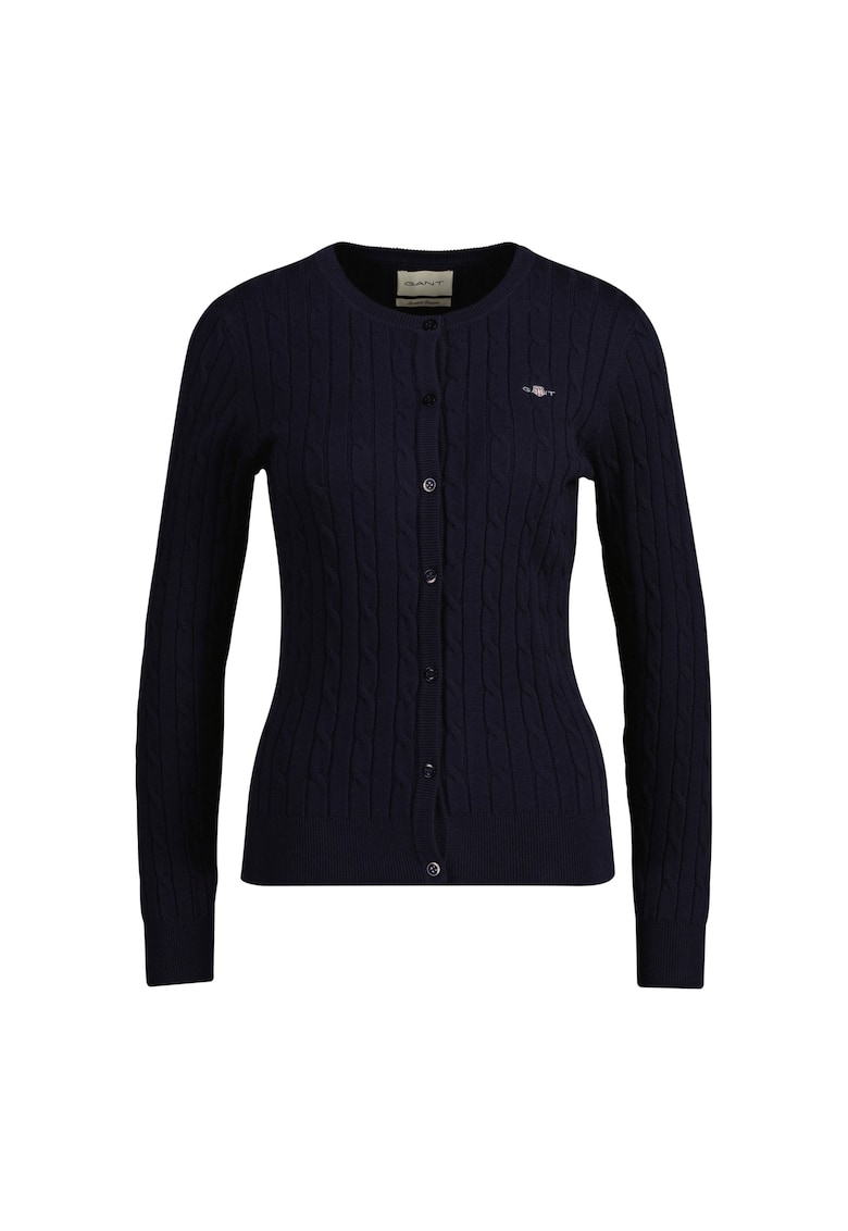 - Качество и издръжливост – Плетена жилетка с копчета – Син Gant – изработени от висококачествени материали, които осигуряват комфорт и дълготрайност.