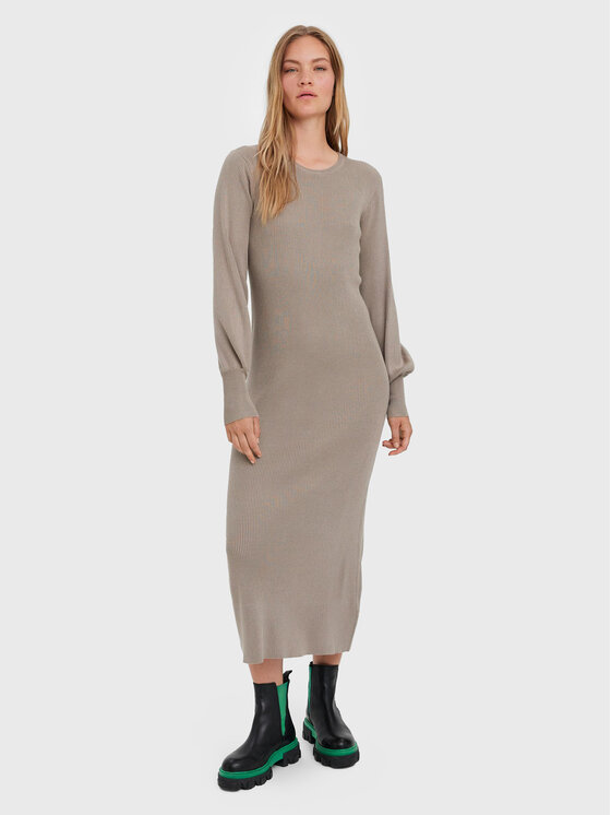 Купете Vero Moda Плетена рокля Valor 10271105 Бежов Slim Fit на топ цена сега!