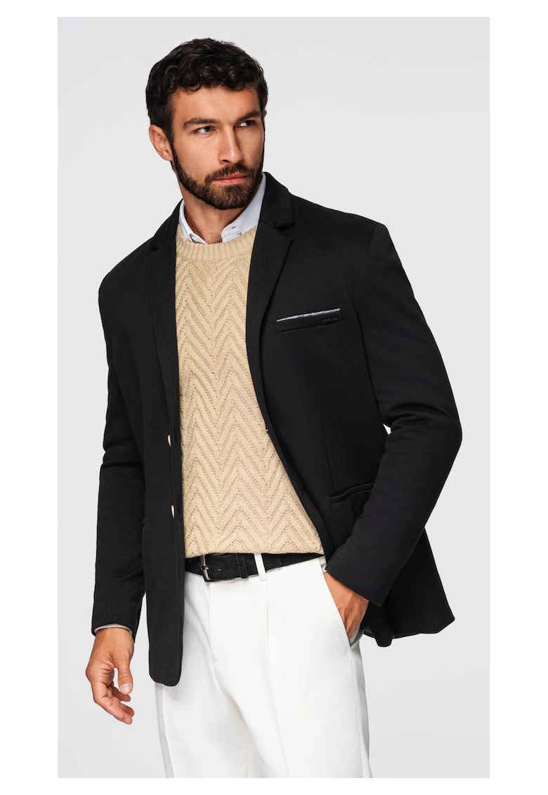 Относно Плетено сако с вталена кройка OM-BLZB-0100 – Черен – Черен OMBRE
