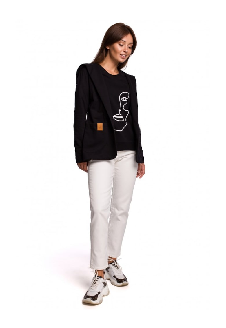 Относно Плетен блейзер – С качулка – Памук – Еластан – Черен OEM