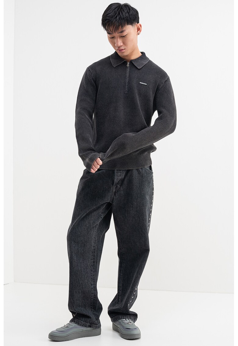 Плетен пуловер с яка и къс цип GUESS JEANS