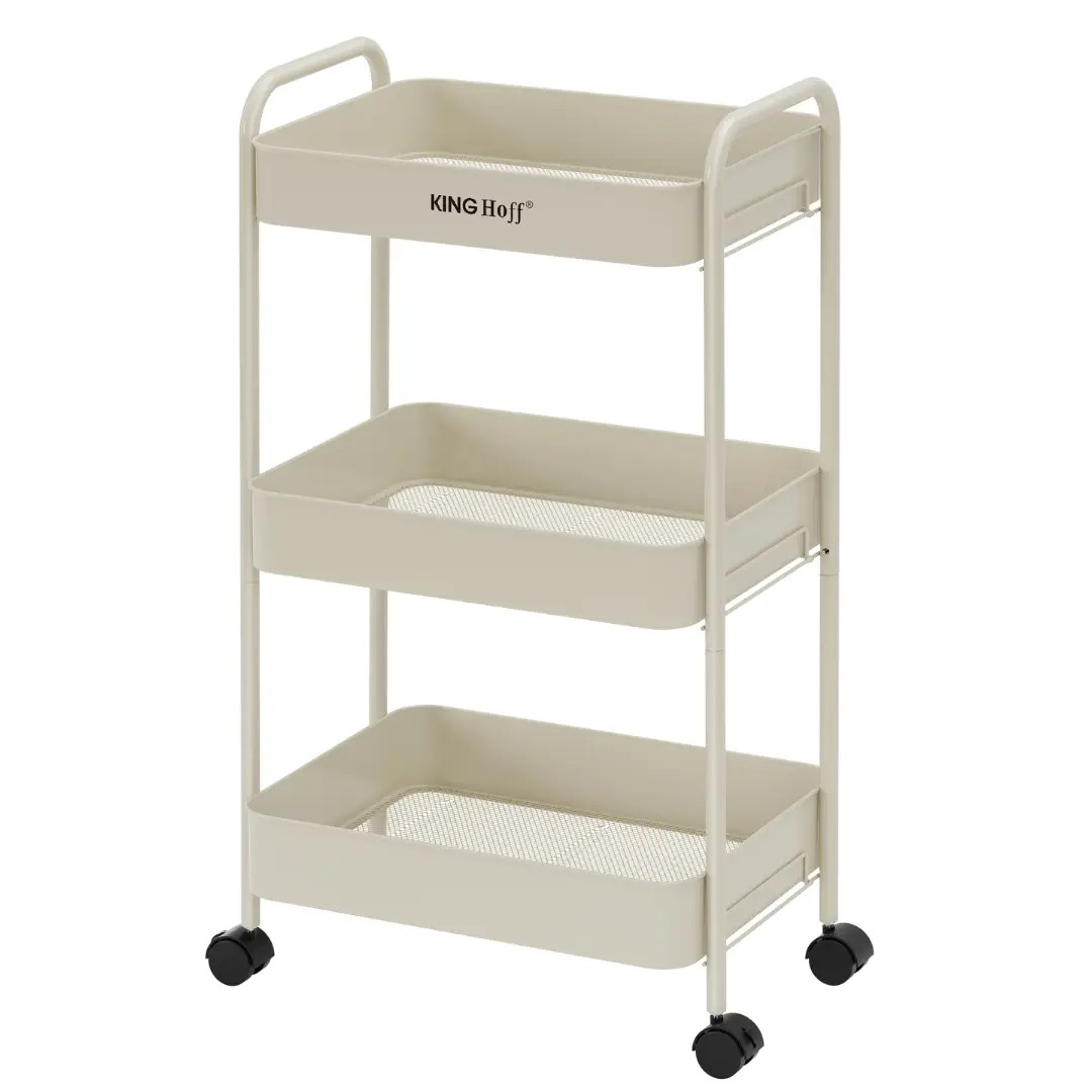 Подвижна етажерка Kinghoff KH 1943, 3 нива, 4 колелца въртящи се на 360 градуса, Бежов