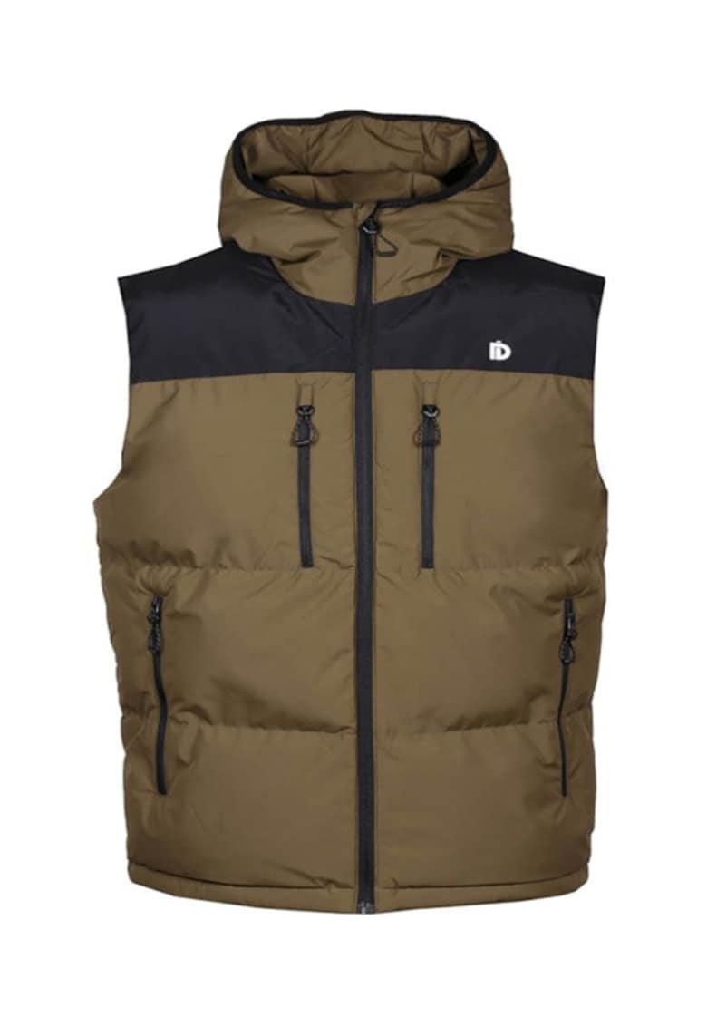 Характеристики Тип продукт: елек Цвят: кафяв Материал: полиестер – полиамид Кройка: стандартна Принт: лого Качулка: с качулка Дължина ръкав: без ръкав Джобове: 2 външни с цип Детайли: 2 джоба с цип – качулка Закопчаване: цип Състав Външна част: 100% полиестер – 100% полиамид