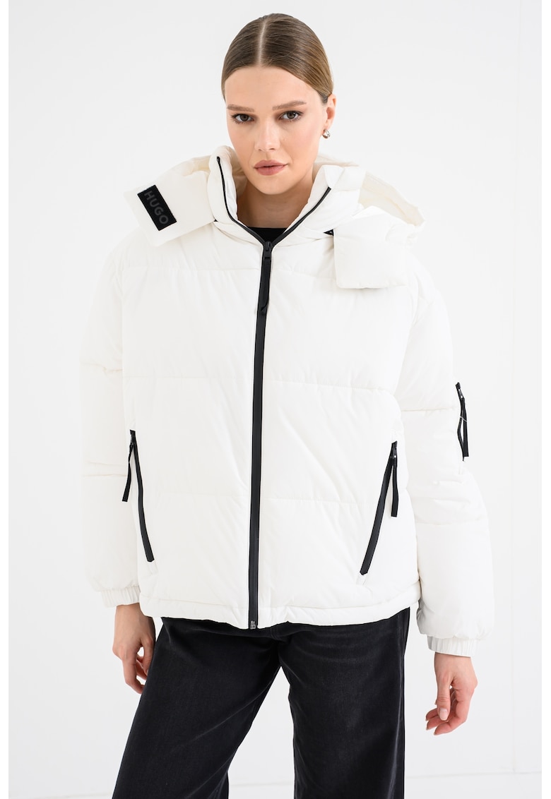 Подплатено зимно яке с джобове с цип – Черен/Бял HUGO