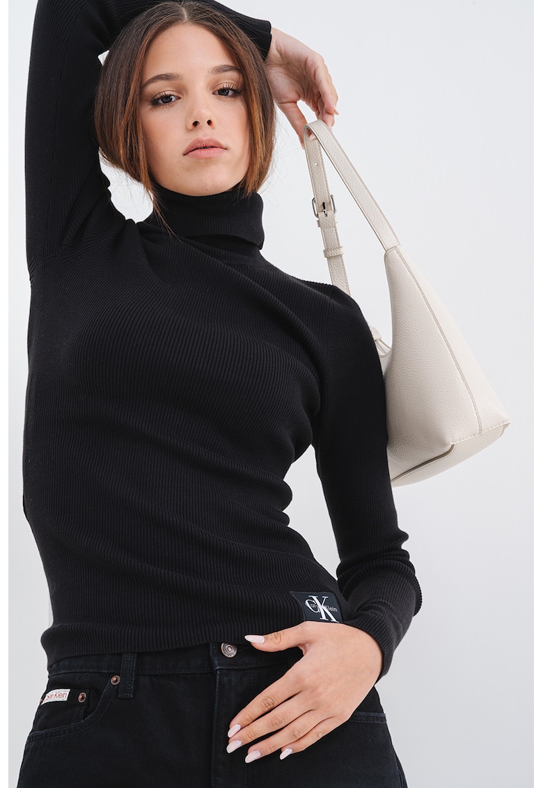 Характеристики Тип продукт: пуловер Цвят: черен Принт: без принт Материал: памук – полиамид Модел: поло Кройка: по тялото Закопчаване: без закопчаване Дължина ръкав: дълъг ръкав Състав Външна част: 65% памук – 32% полиамид – 3% еластан Информация за модел Моделът е облечен с …