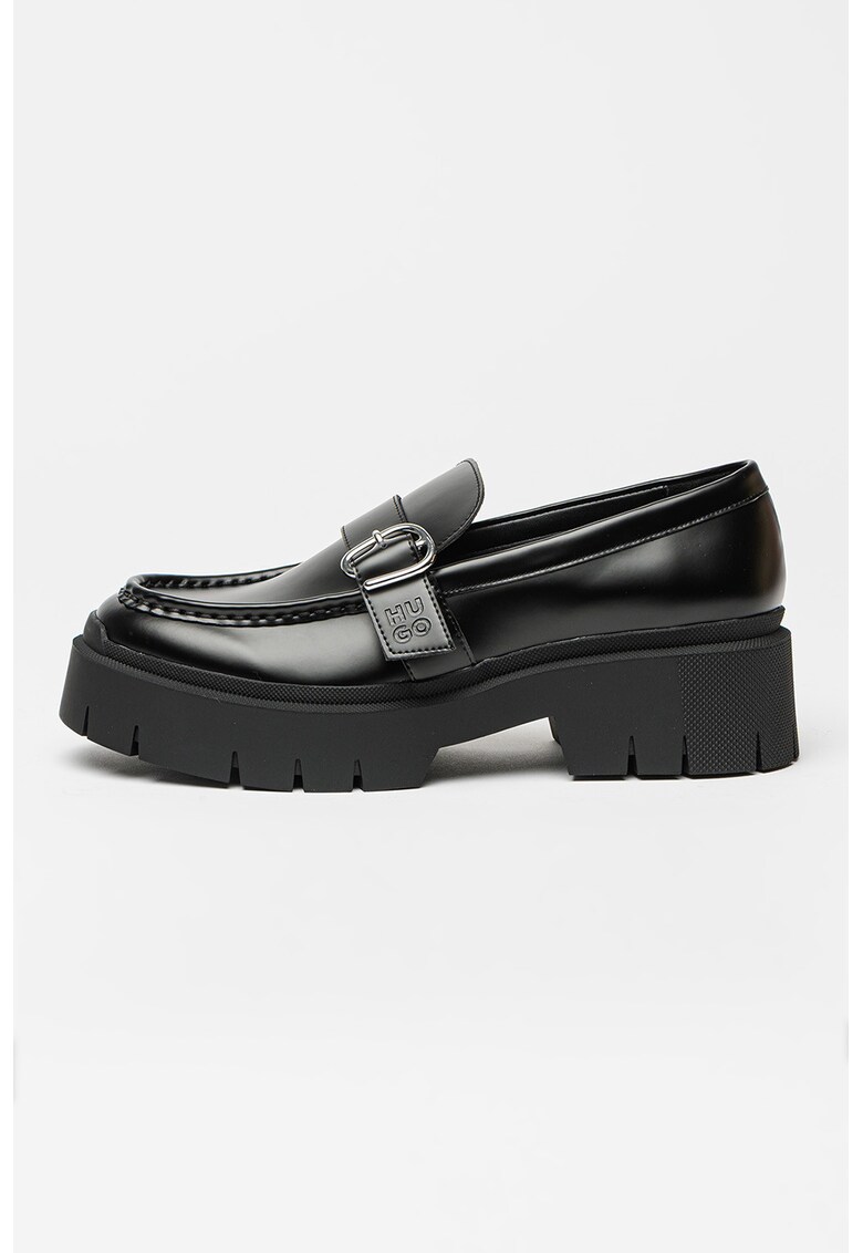 Оригинални Полускосени мокасини от еко кожа – Черен HUGO